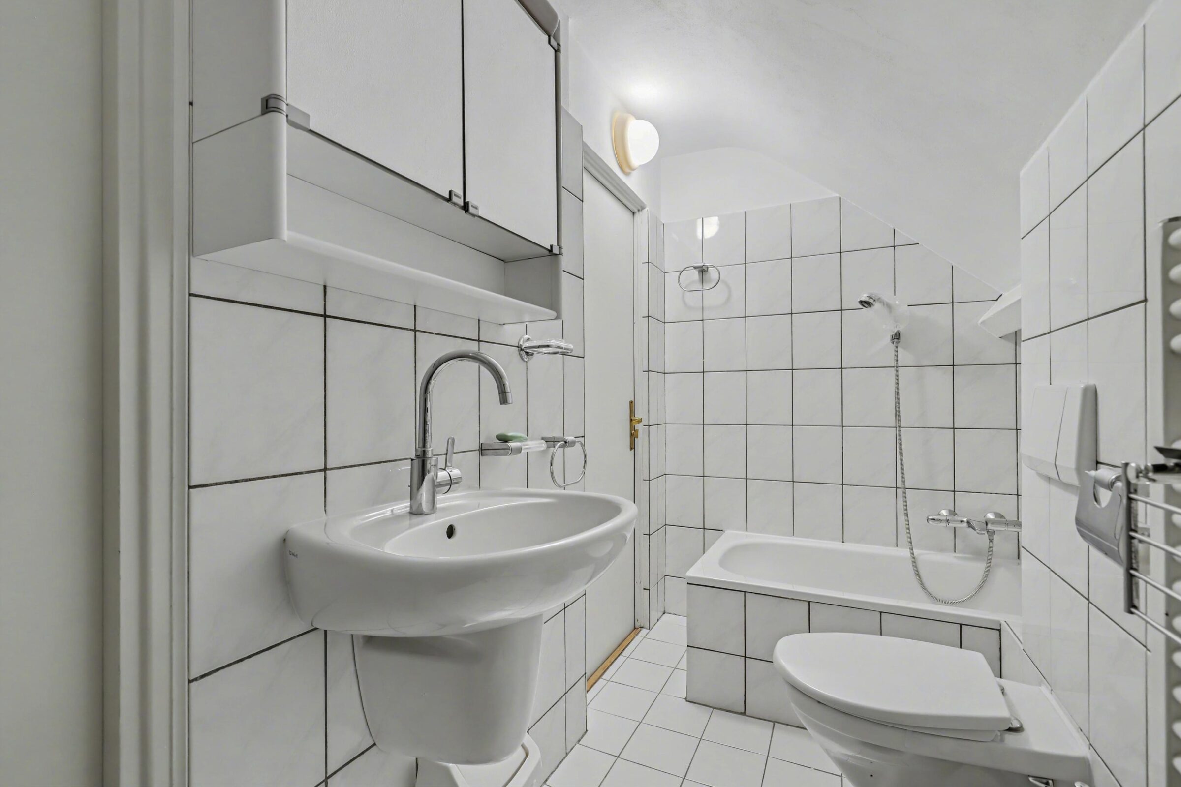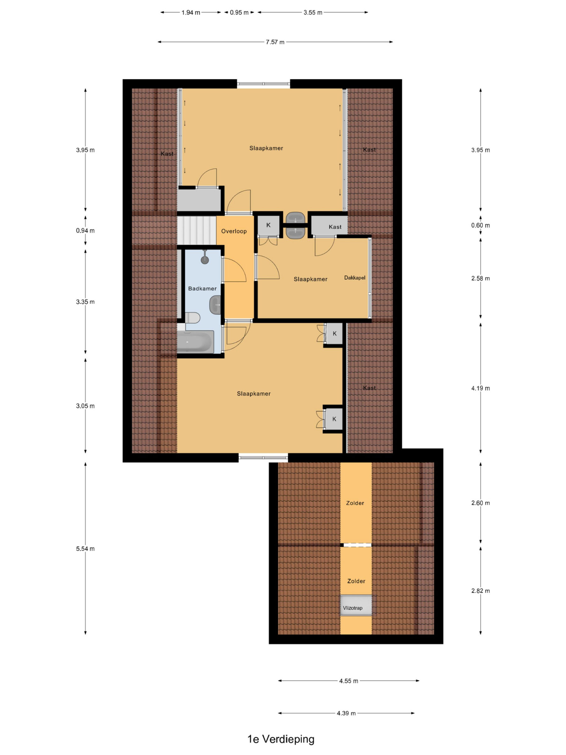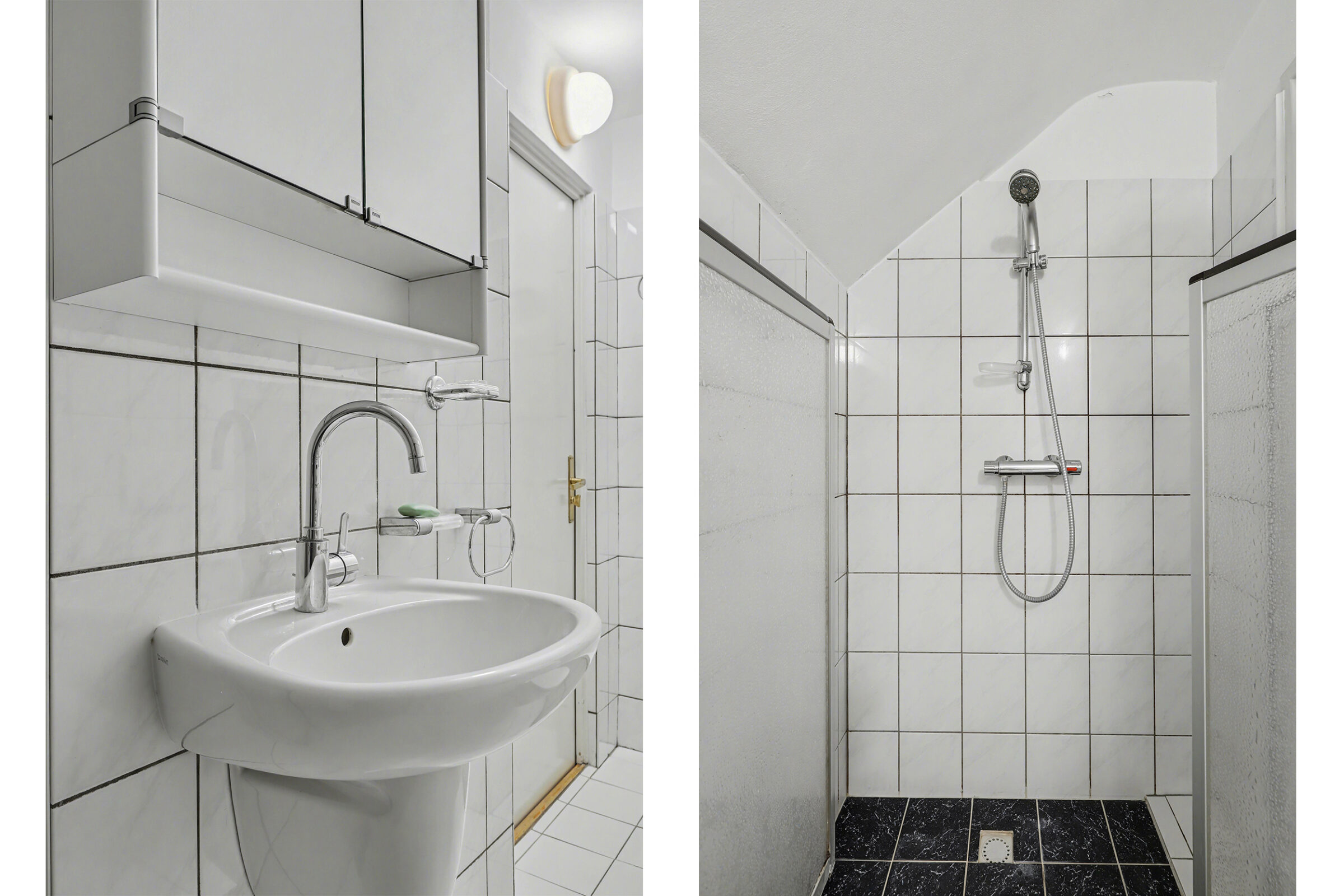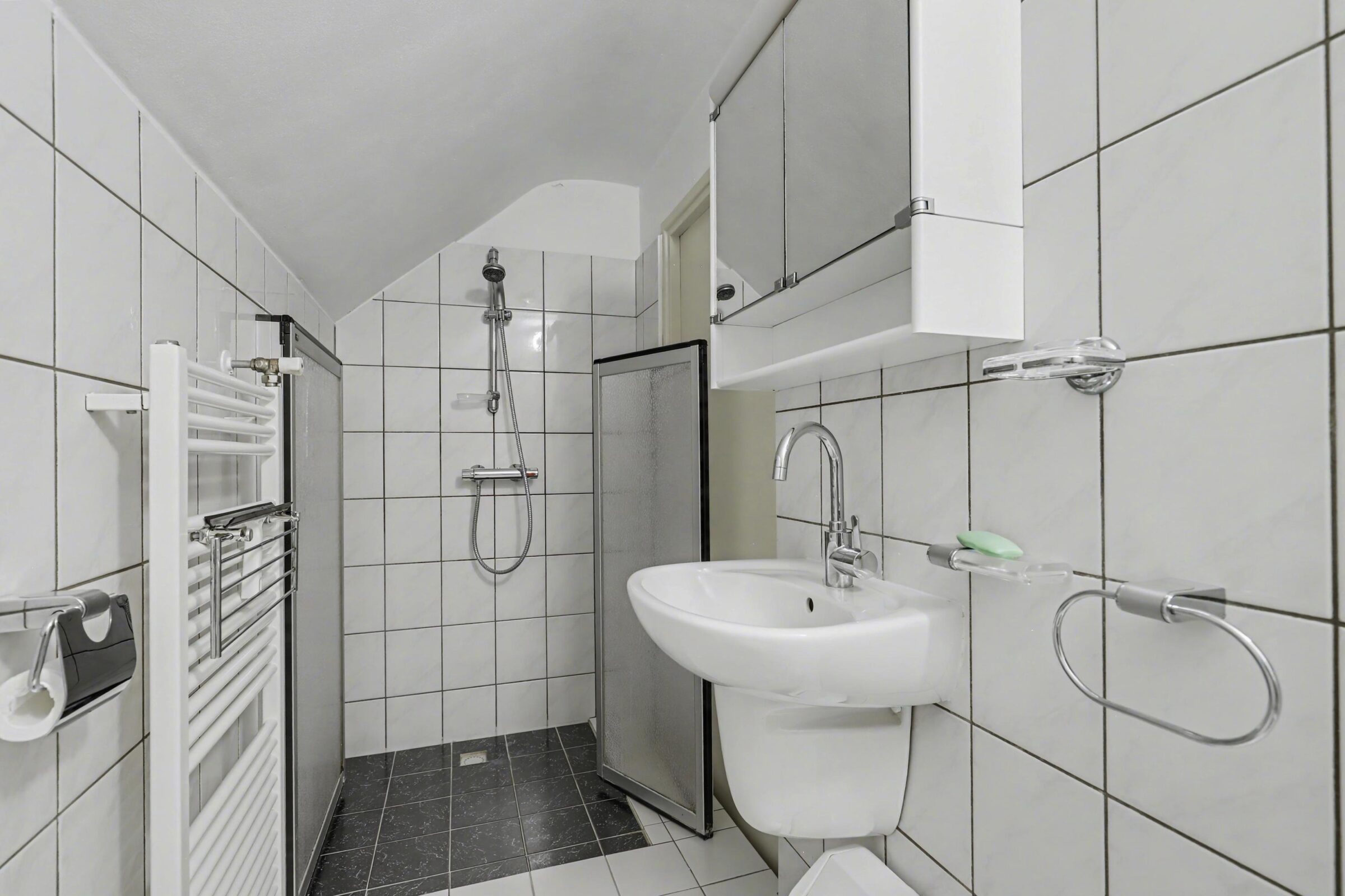 Overloop welke toegang geeft tot de drie slaapkamers en de badkamer. De badkamer, welke ook vanuit de slaapkamer bereikbaar is, is voorzien van een bad, douche, toilet en wastafel.