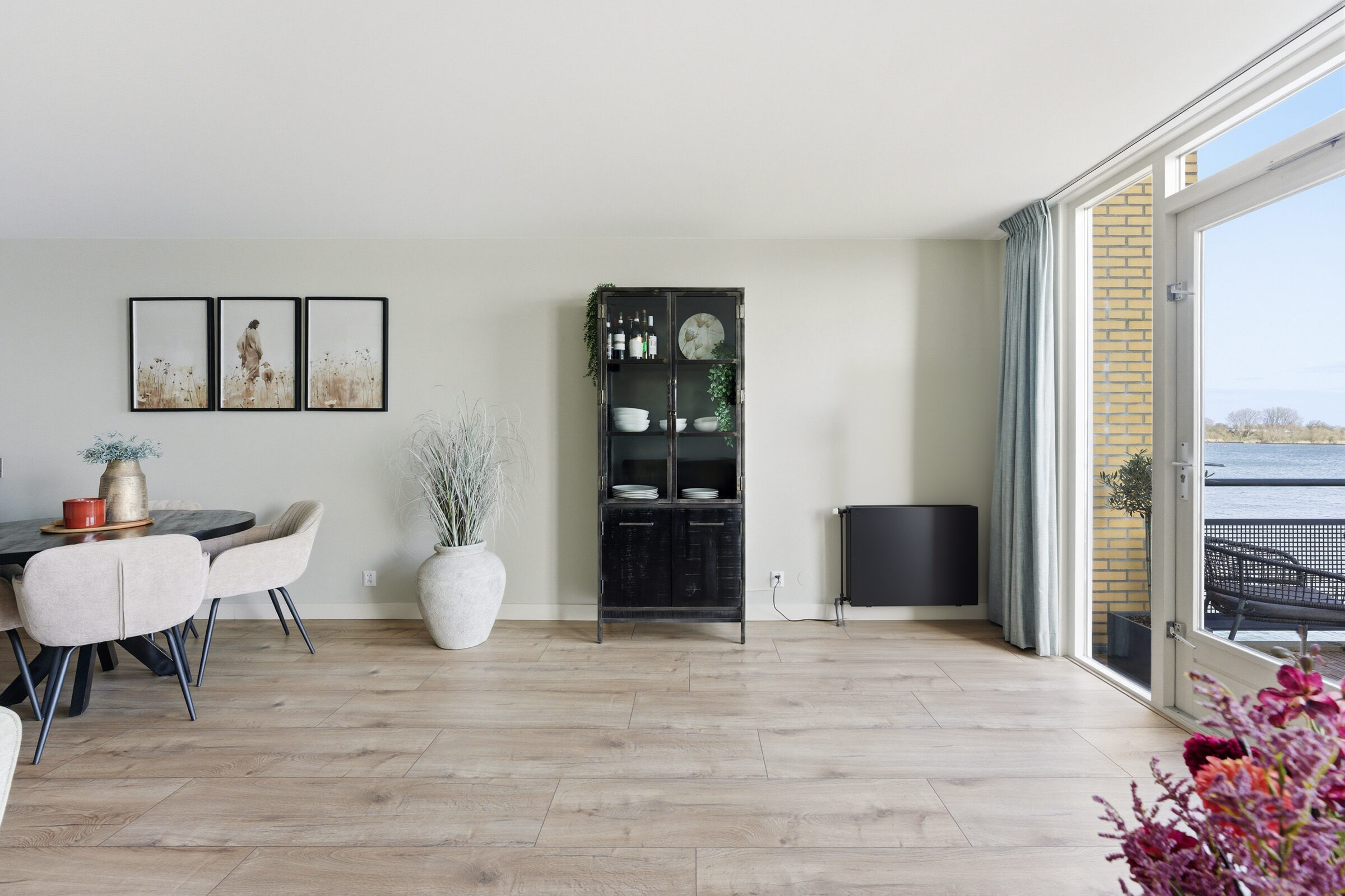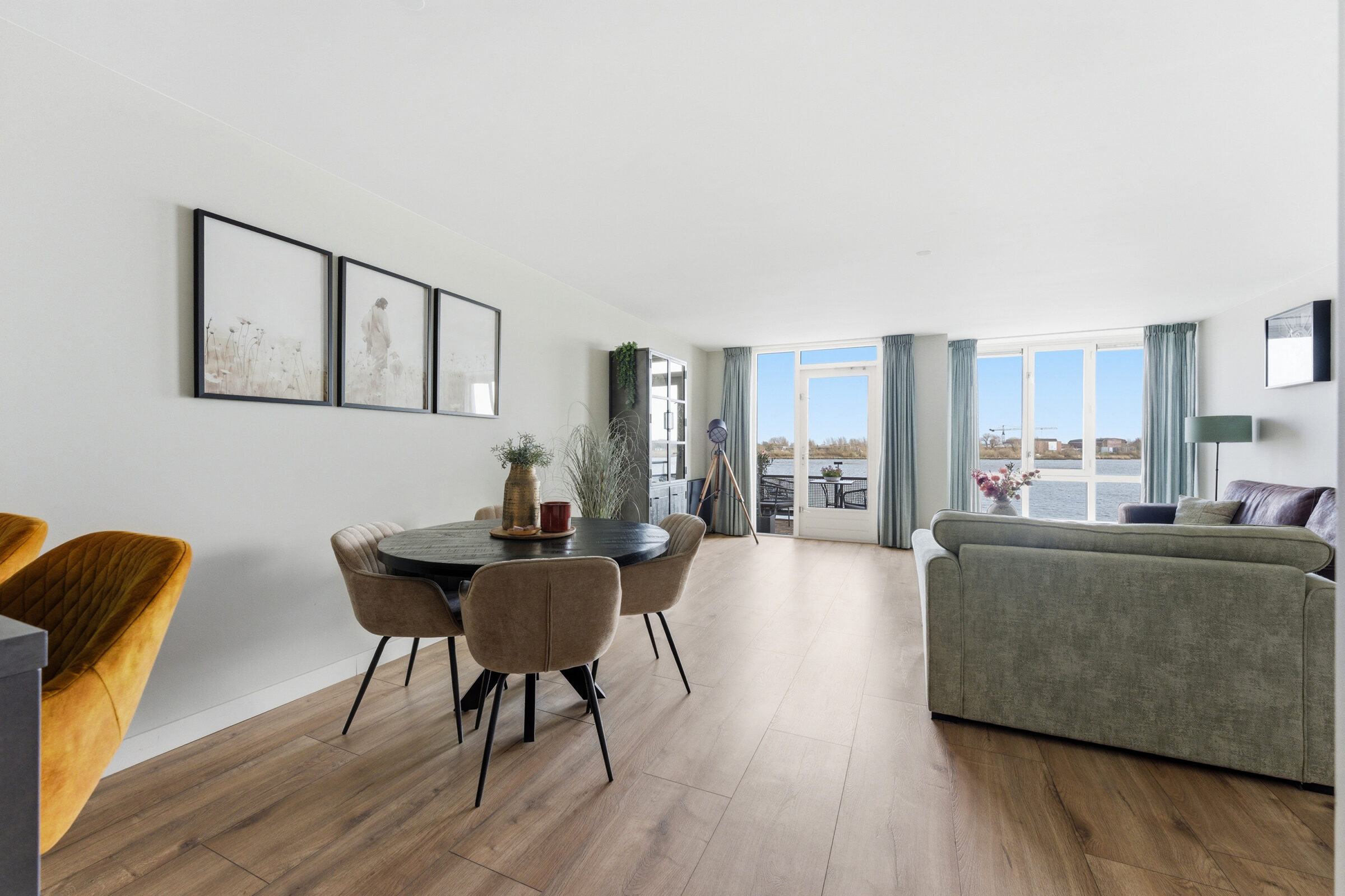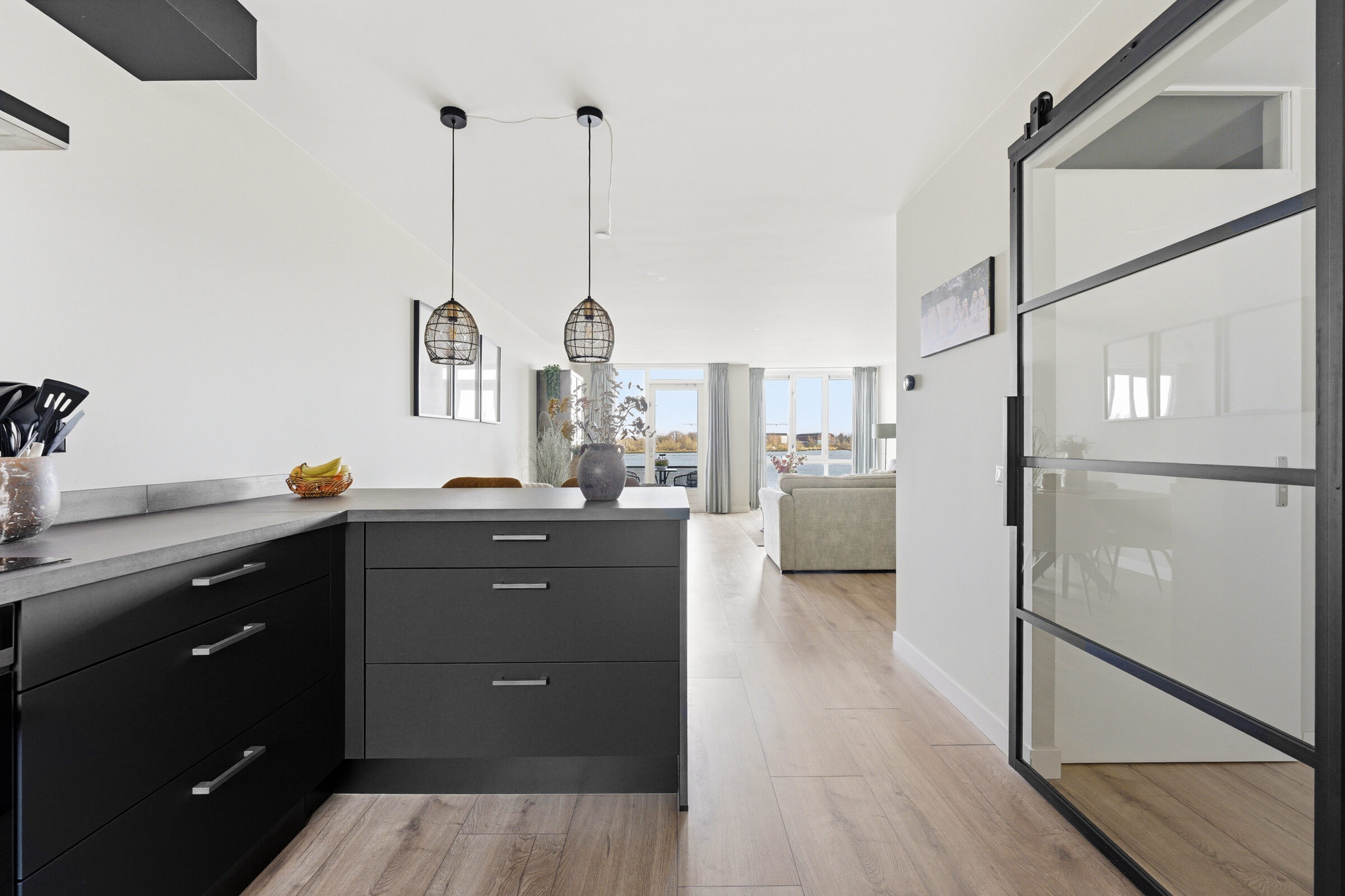Entree in hal welke toegang geeft tot de woonkamer, toiletruimte, meterkast en trap naar de eerste verdieping. Vanuit de royale woonkamer is er een panoramisch uitzicht over de Nieuwe Maas! De woonkamer geeft toegang tot het balkon, dat is voorzien van houten vlonders. Aan de voorzijde bevindt zich de prachtige keuken met inbouwappartuur van de luxe Studio Line van Siemens. De volgende inbouwapparatuur is aanwezig; vaatwasser, koelkast, vriezer, inductiekookplaat, afzuigkap, oven, magnetron en Quooker. De gehele begane grond is voorzien van vloerverwarming, in de woonkamer is een design airco aanwezig die zowel koelt als verwarmt.