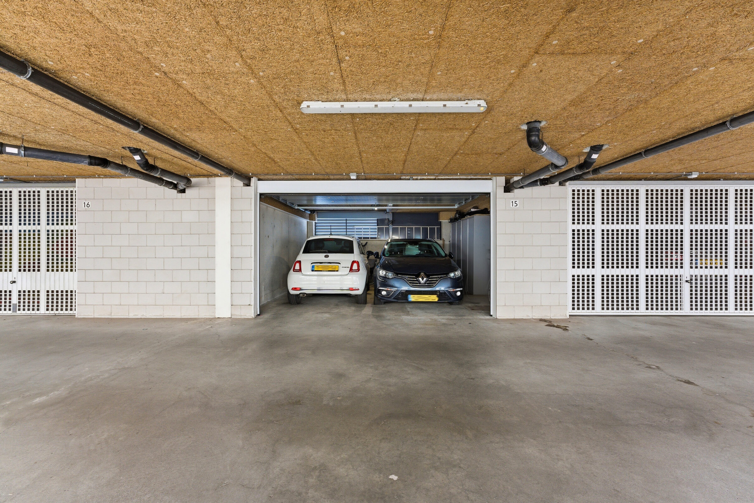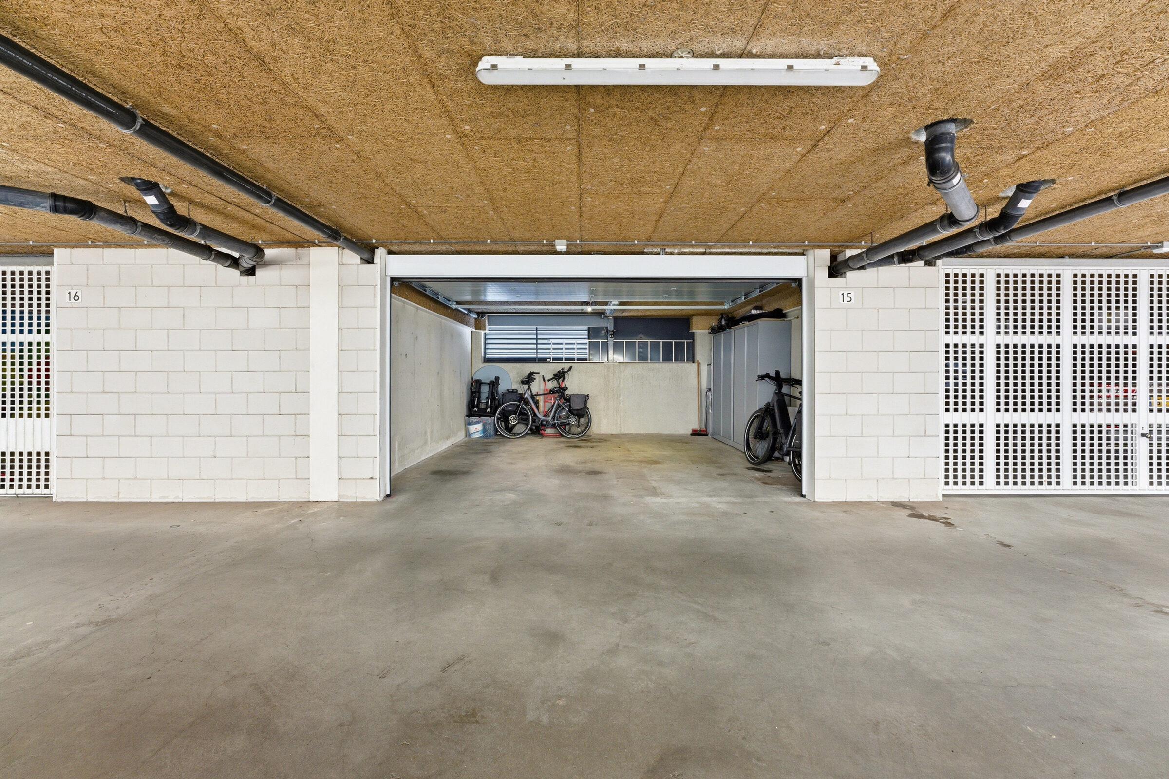 De garage bevindt zich onder de woning en biedt ruimte voor twee auto’s en daarnaast nog voor opslag. De garage is in 2024 voorzien van een elektrisch bedienbare deur.