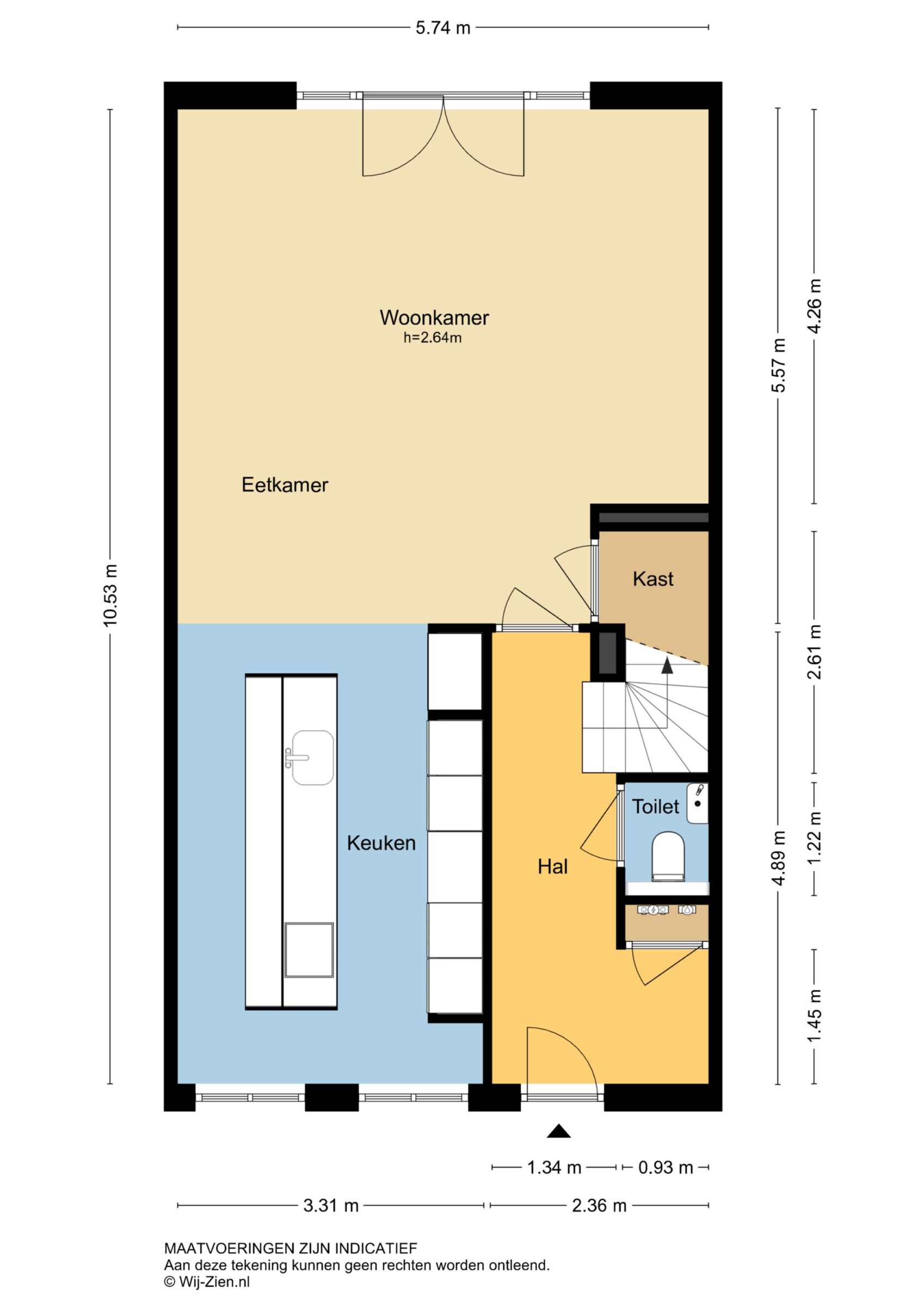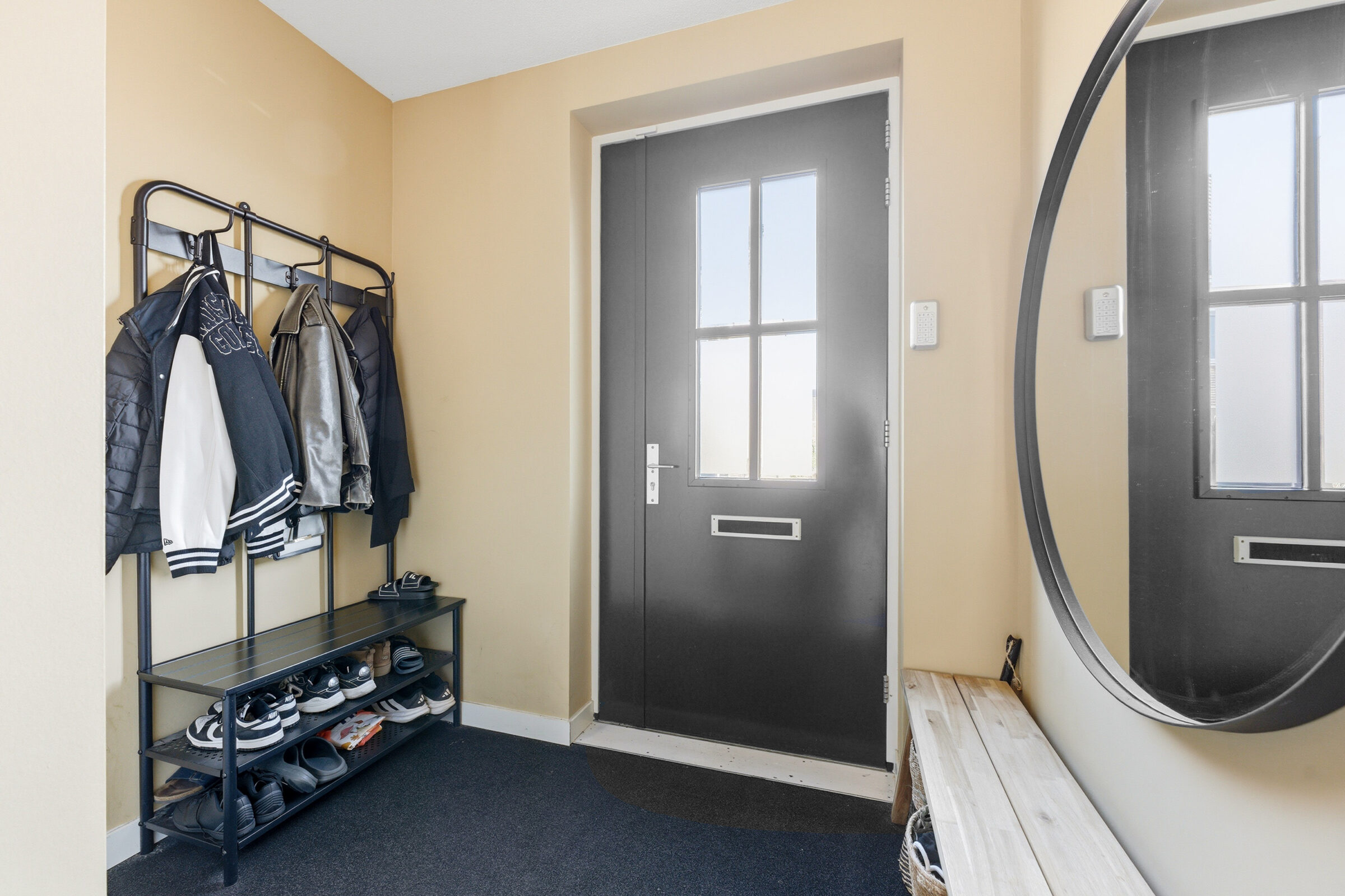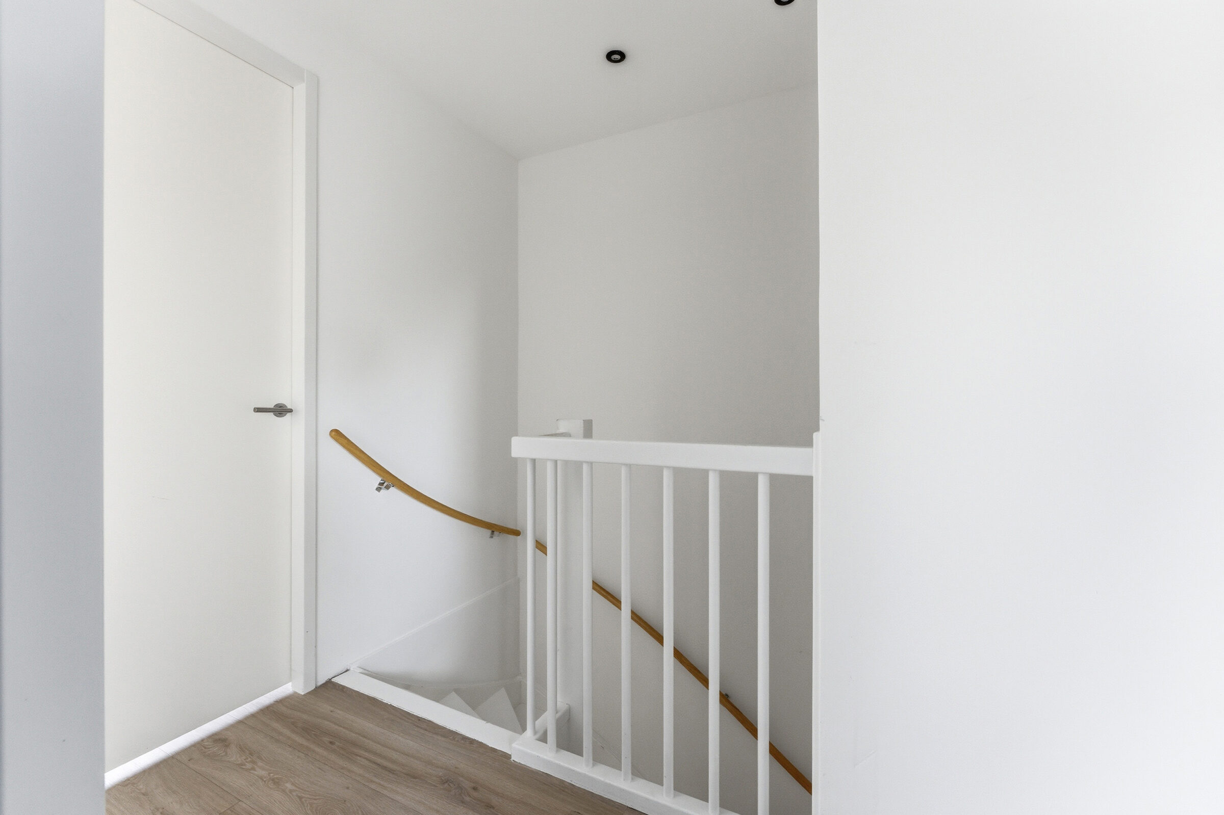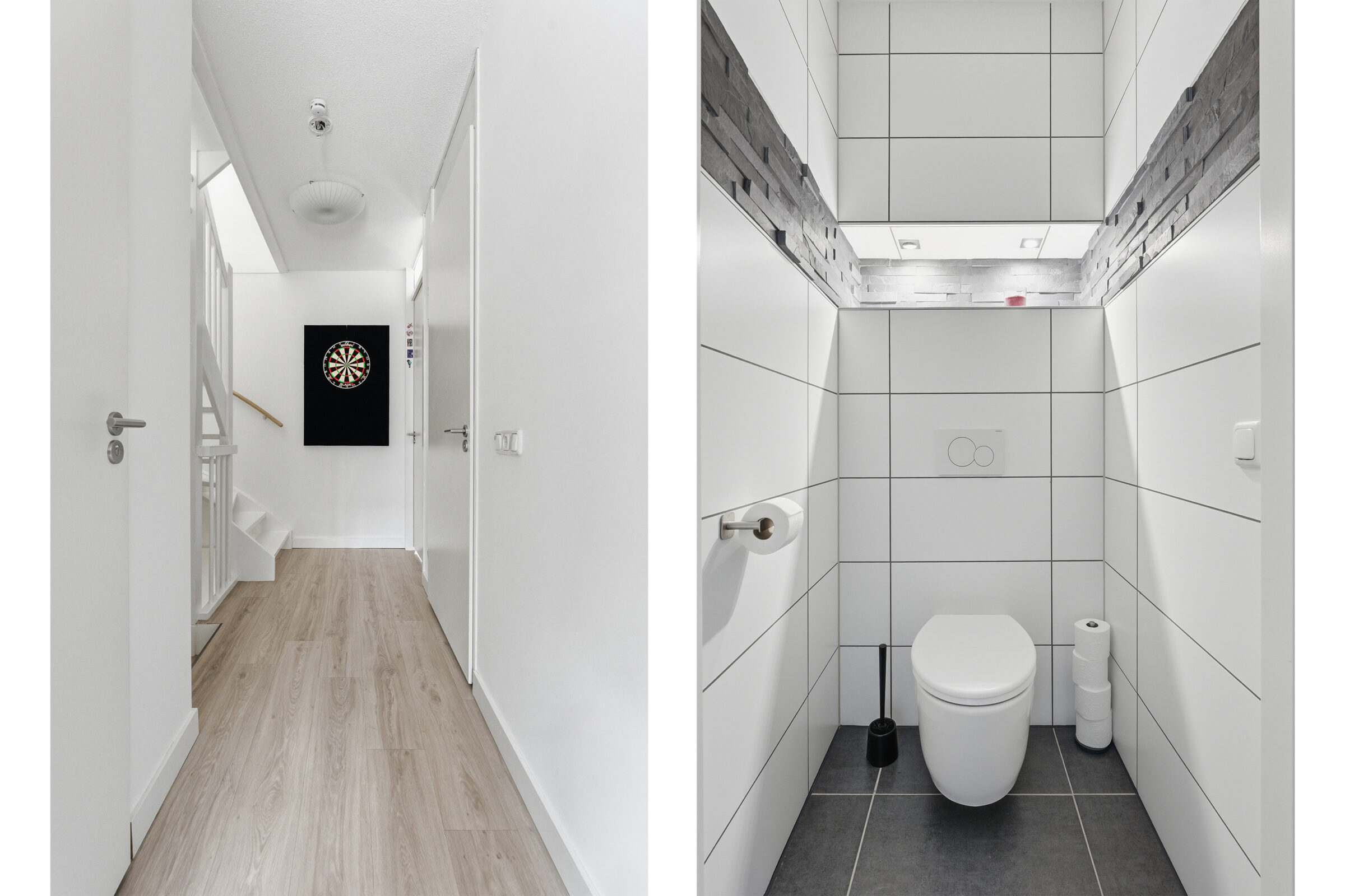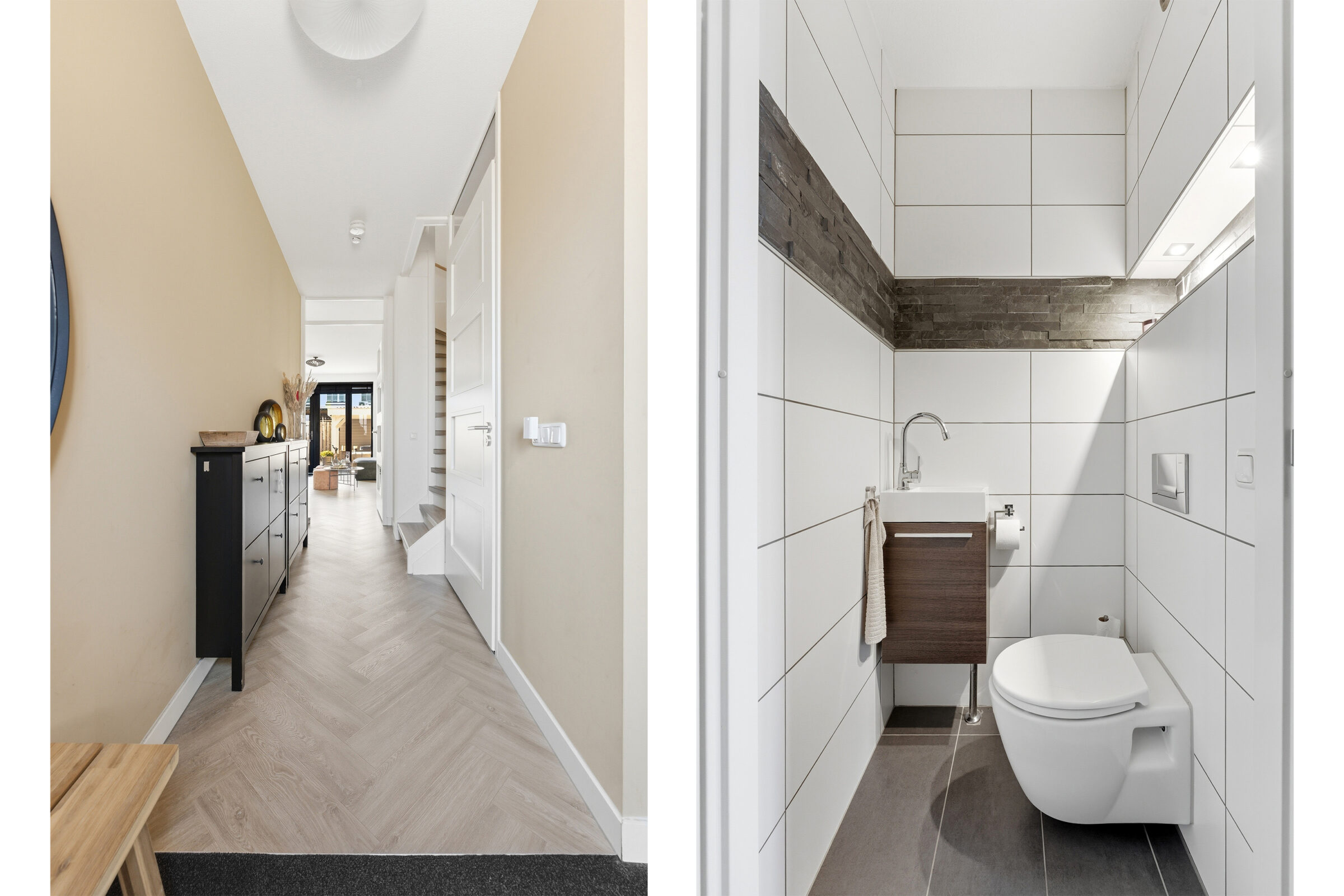 Entree in de hal met toegang tot de toiletruimte, meterkast, woonkamer en de trap naar de eerste verdieping. De trap is in januari 2026 volledig gerenoveerd. De royale, tuingerichte woonkamer beschikt over een praktische trapkast en openslaande deuren naar de achtertuin.