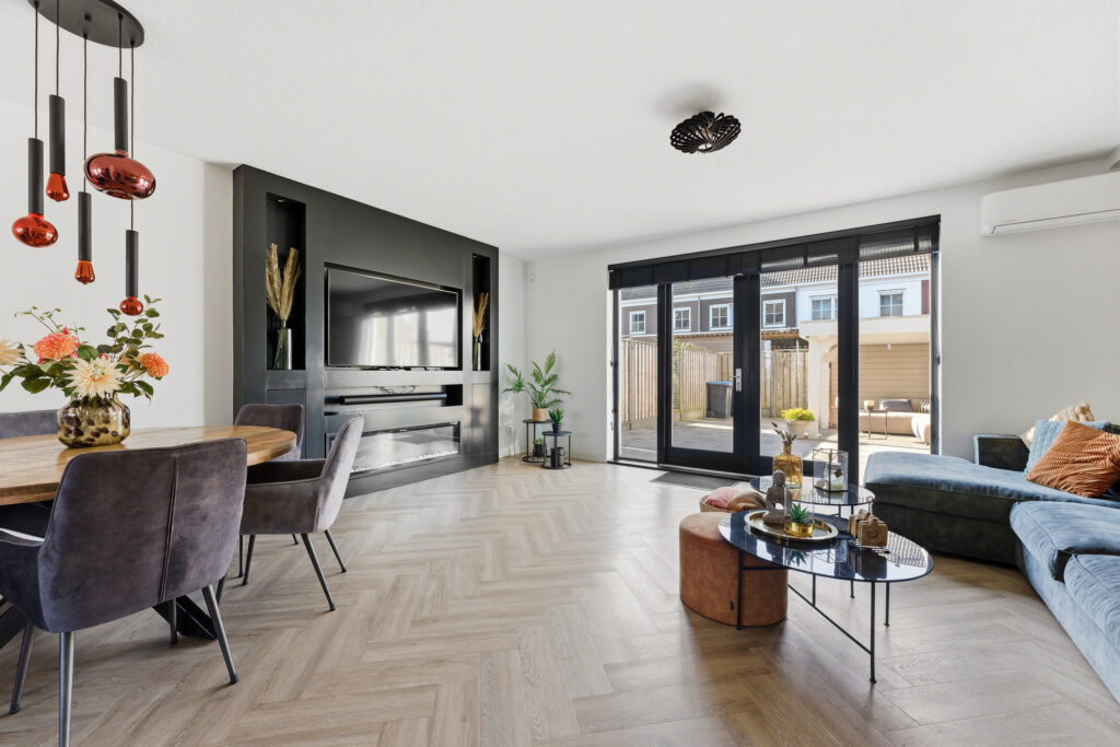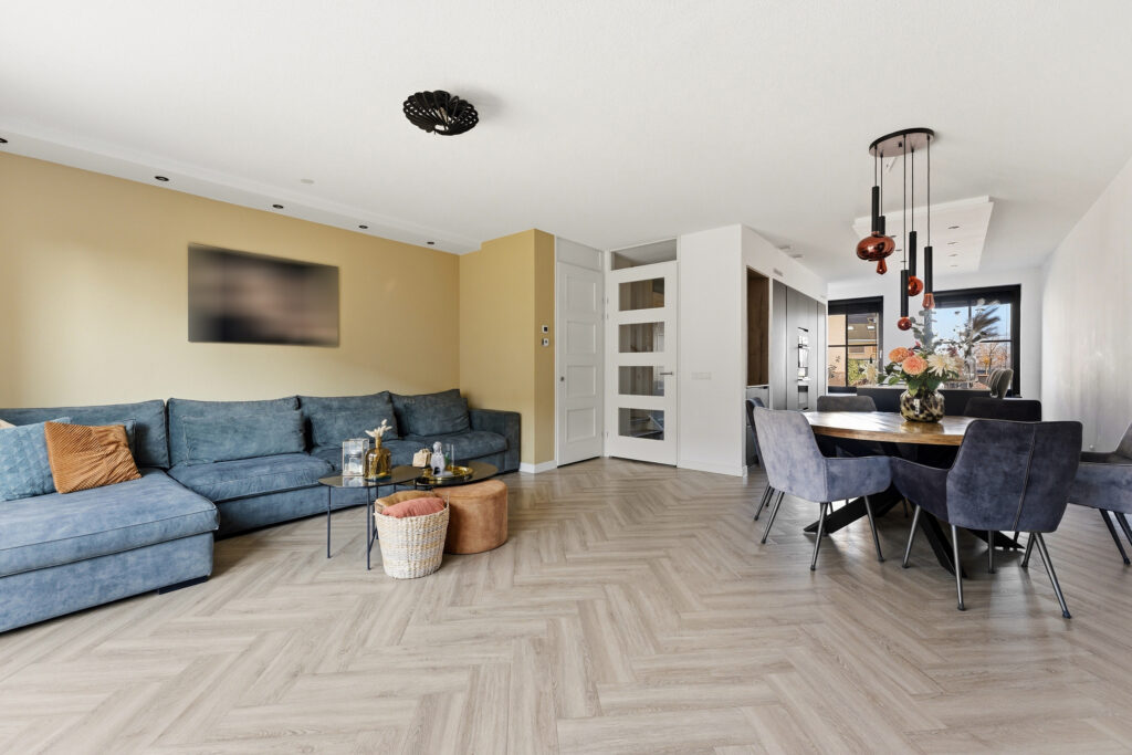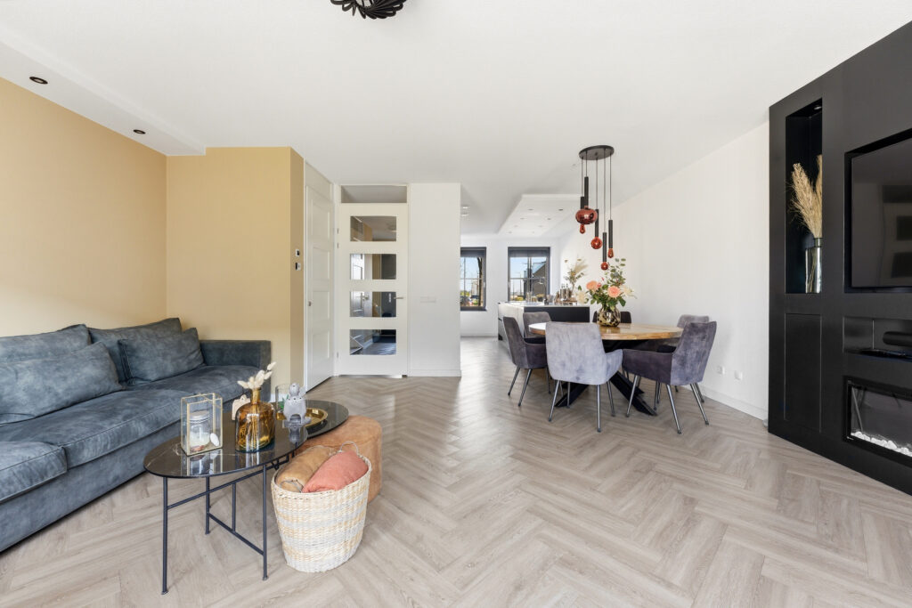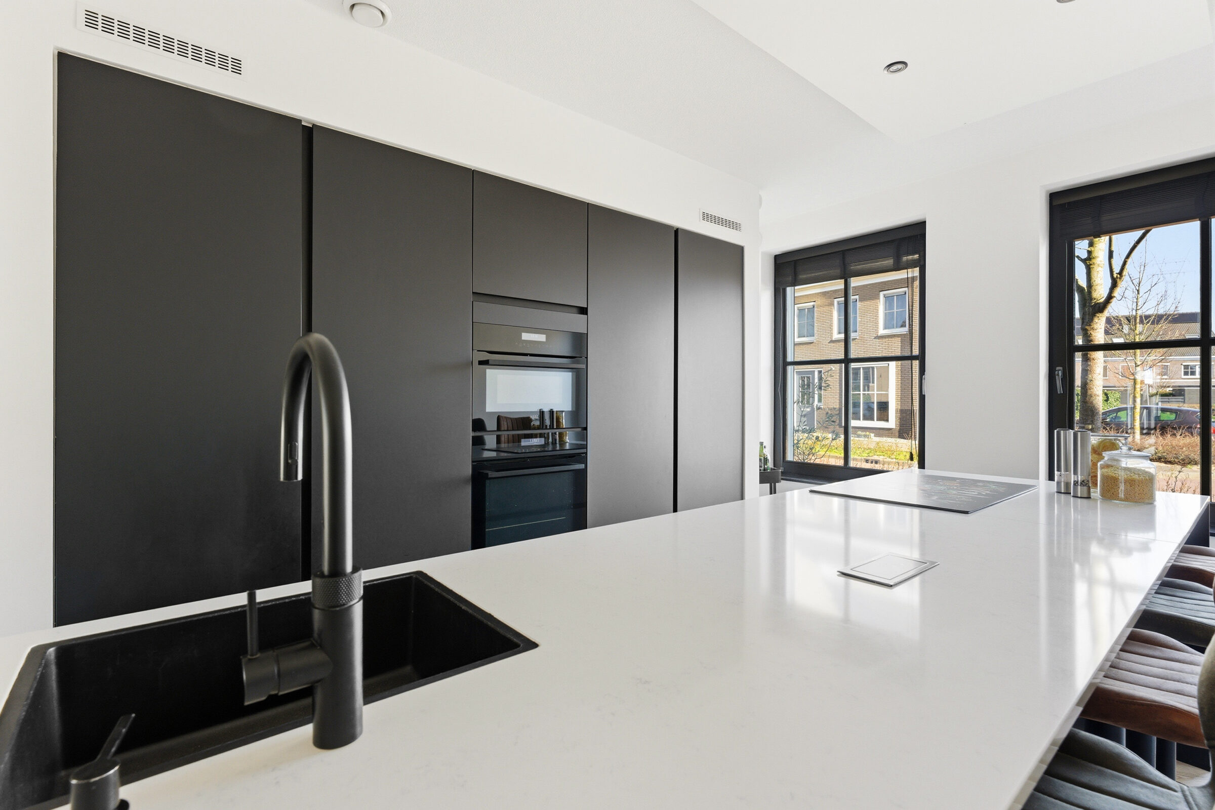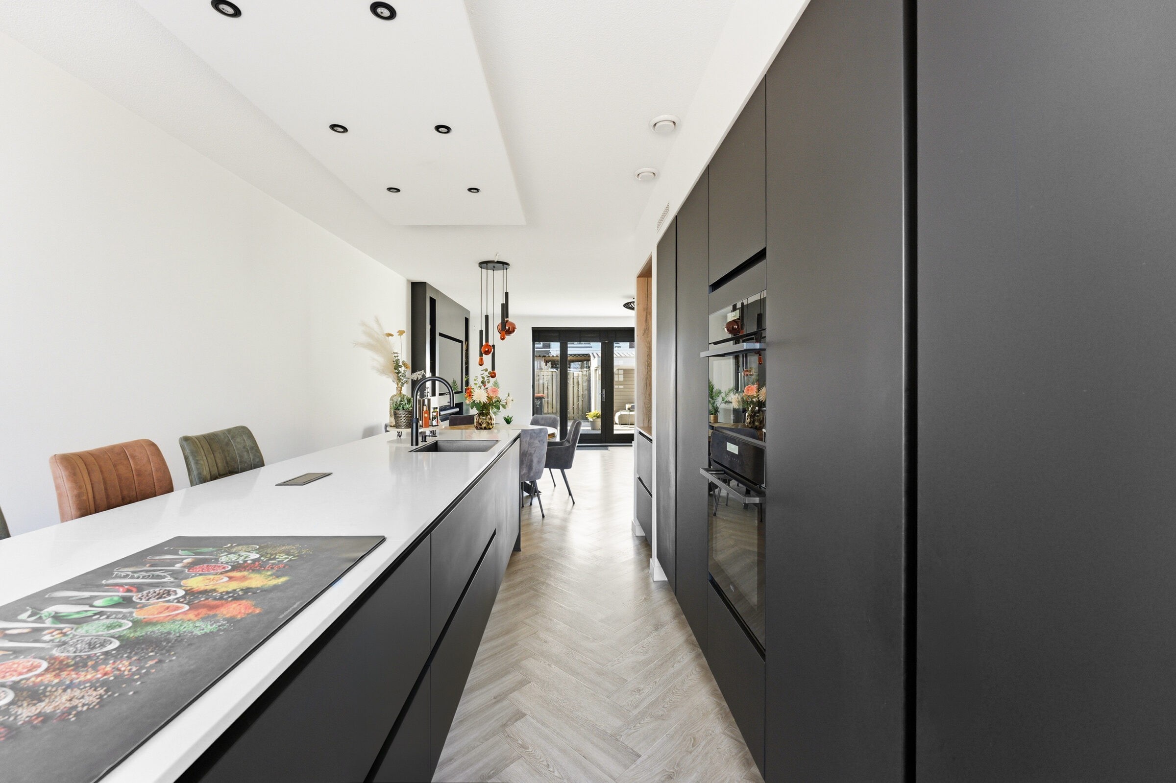 Het hart van de woning wordt gevormd door de royale woonkeuken. In 2021 is hier een luxe keuken geplaatst met een indrukwekkend kookeiland van maar liefst 3,60 meter. Het eiland is uitgerust met een hoogwaardige Bora inductiekookplaat met geïntegreerde afzuiging, wat zorgt voor een strak en modern design zonder zichtbare afzuigkap.