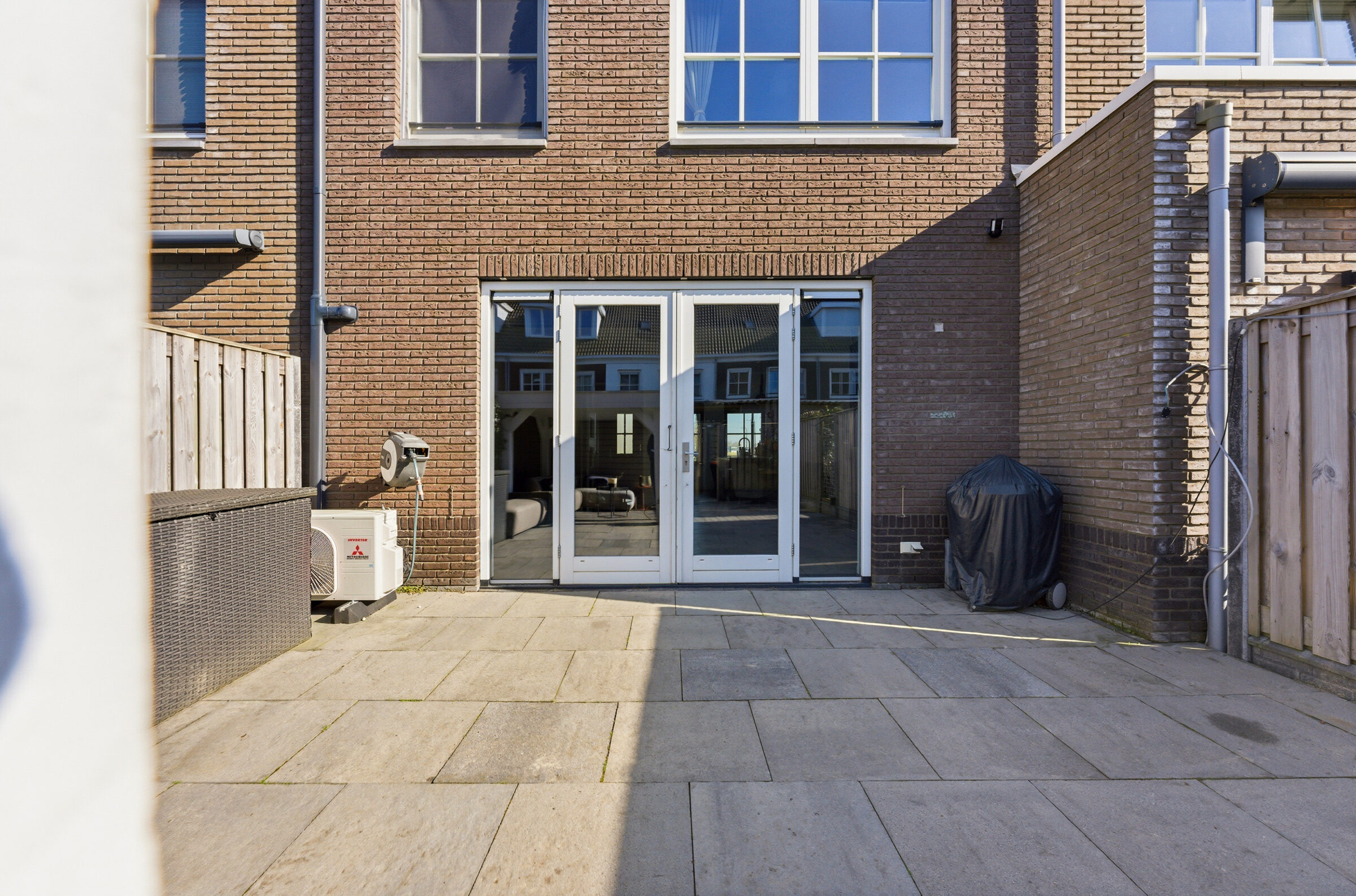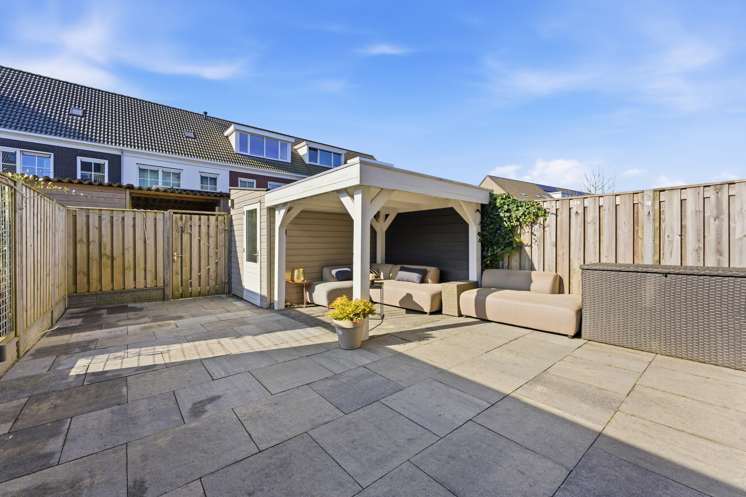 De zonnige achtertuin is gelegen op het zuidwesten en beschikt over een berging en een fraaie overkapping met verlichting.